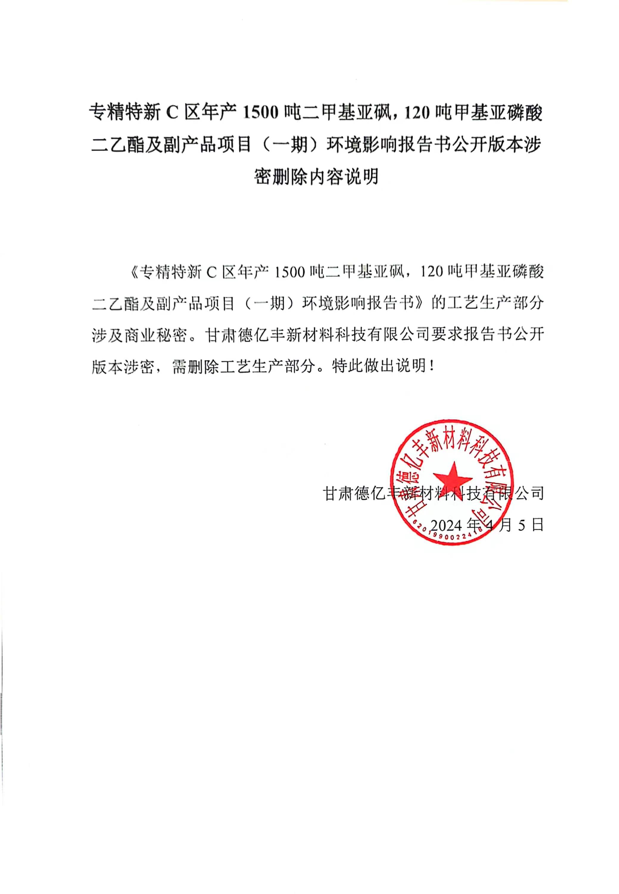 五、单位名称:甘肃德亿丰新材料科技有限公司